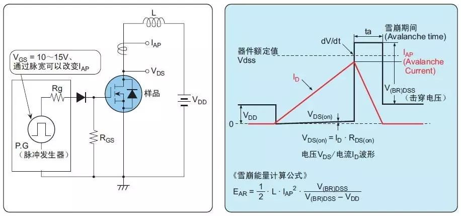 在介質負載的開關運行斷開時產生的回掃電壓,或者由漏磁電感產生的尖峰電壓超出功率MOSFET的漏極額定耐壓并進入擊穿區而導致破壞的模式會引起雪崩破壞。