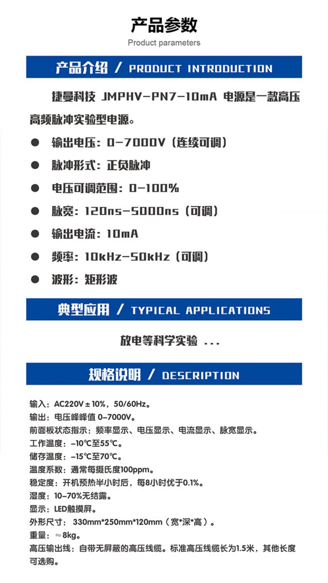 JMPHV-PN7-10mA 高頻高壓脈沖電源